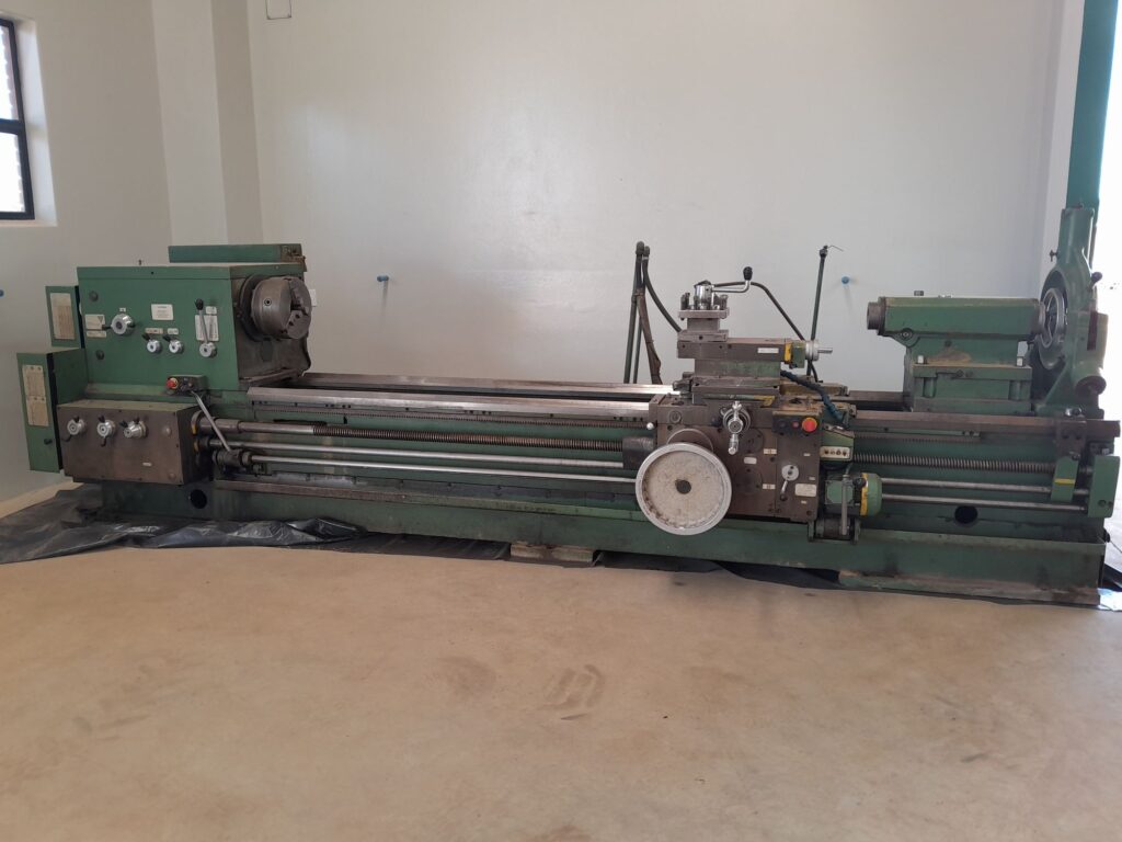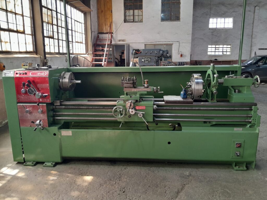 Voest Apollo 520 lathe for sale. Two meters between centres. 520mm swing over the bed. 72mm spindle bore. Three and four jaw chucks. Quick change tool post with 31 holders. Steady. In full working condition. Germiston